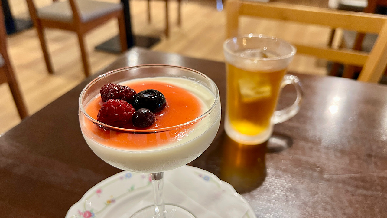 このほか、デザートのショーケースには昔ながらのプリンや季節のフルーツを使ったタルトなども並びます。午後の時間を静かに楽しむのもいいですね。