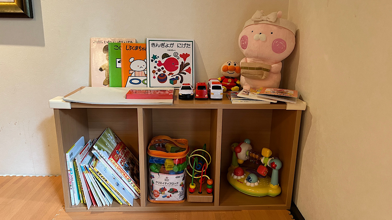 部屋の中には小さな子供向けの絵本やおもちゃもありました。