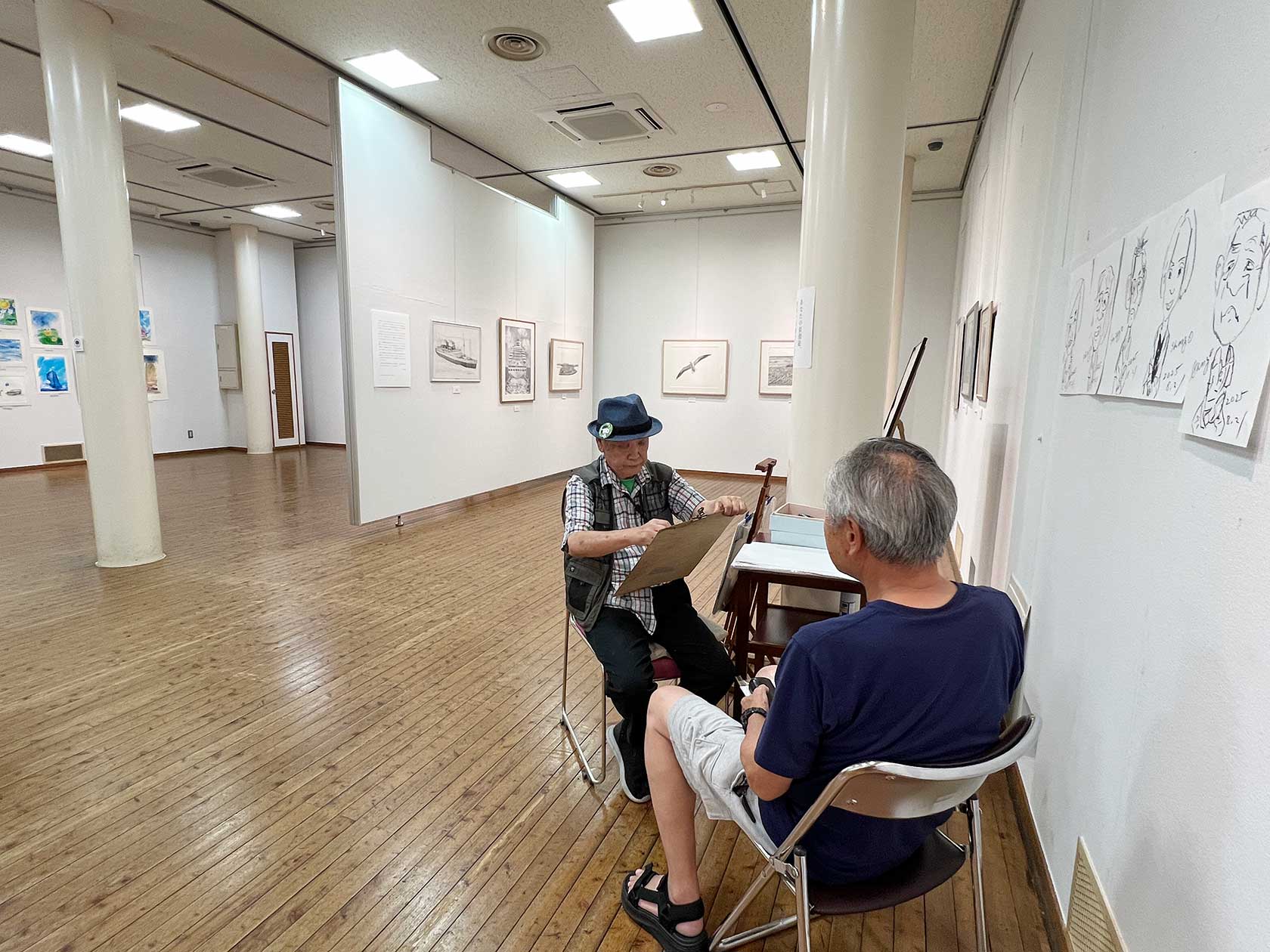 期間中、尾崎さんは基本的に在廊。タイミングが合えば、無料で似顔絵を描いてくれる。「久しく似顔絵を描くことから遠ざかっていたが、まだまだ進化したいので、今回チャレンジしている」と尾崎さん。