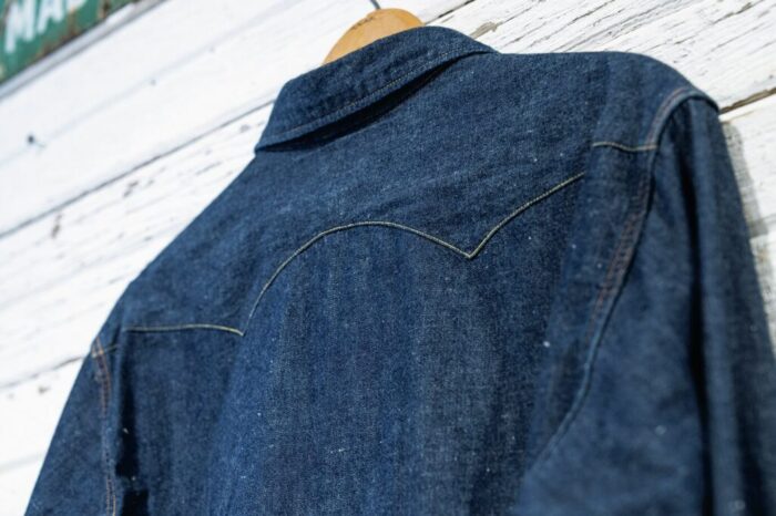 バットウィングとも呼ばれる象徴的なヨークの切り替えもウエスタンシャツの魅力。共生地でシンプルに仕上げている。