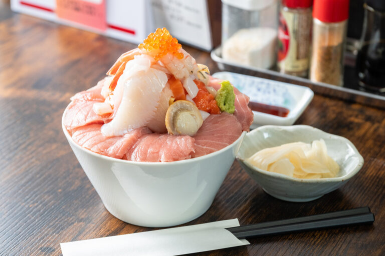 なかでも、思わず写真を撮りたくなるほど美しい『スペシャル海鮮丼』は必食。45年以上、日本料理ひと筋で料理と向き合ってきた店主・最上さんこだわりの丼です。