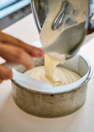 型は丸型でも、パウンドケーキ型でもお好みのものでOK。耐熱のボウルや小さいせいろも型として使えます。