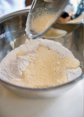 先に液体を混ぜておくことで粉類と混ぜやすく、作業がスムーズ。