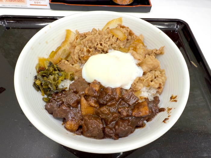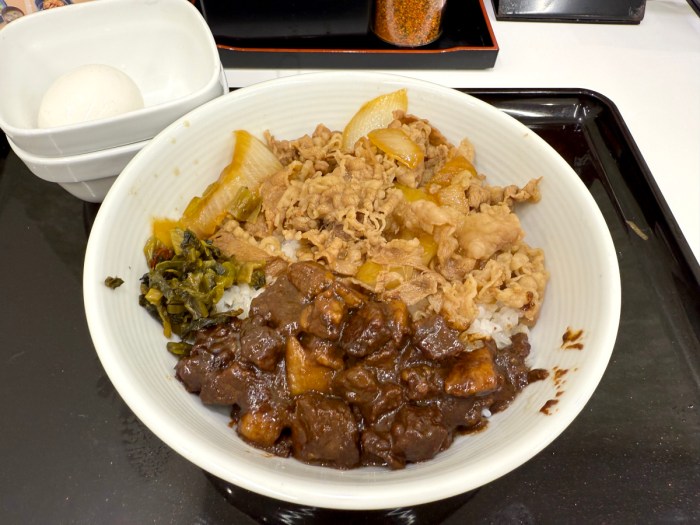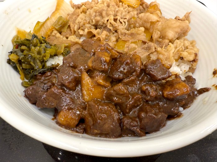 なお、魯肉飯と牛丼の相性は良好だが「ルーのみ」は魯肉飯のスパイスですらかき消すほど味が強いため、個人的にはオススメしない。魯肉飯は魯肉飯、カレーはカレーで召し上がるといいだろう。