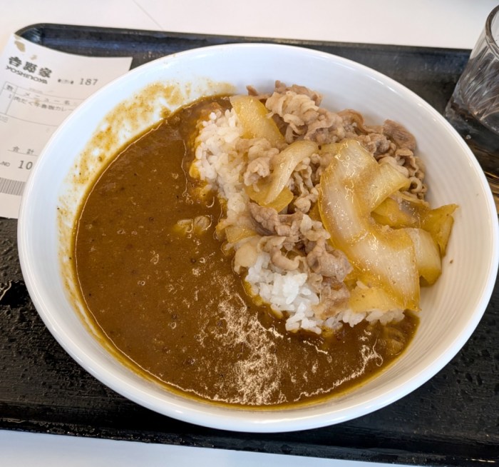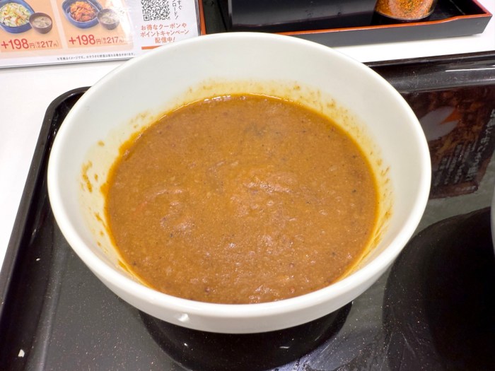 牛魯珈カレーは「ちょっとスパイシー」とか「雰囲気スパイス」ではなく、少なくとも「牛丼屋のカレーの枠をはみ出した味わい」と言っていい。個性的のさらに1歩先を行く、エッジの効きまくった味わいであった。