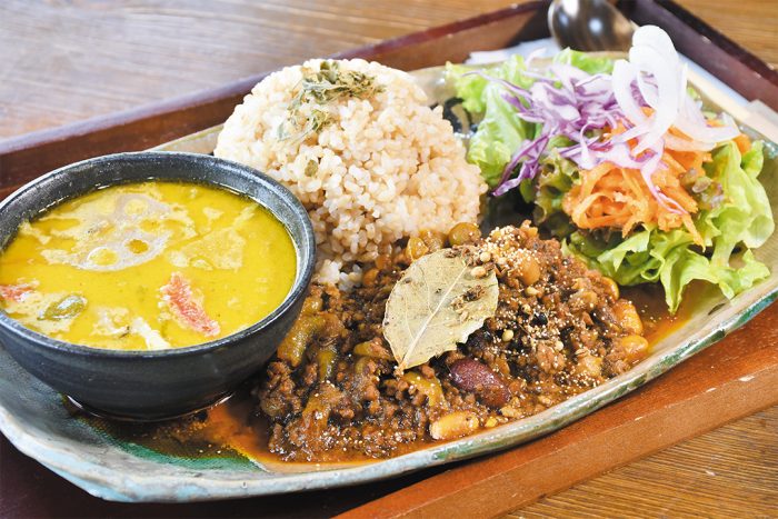 粉末にせず原形のままのホールスパイスがたっぷり入ったキーマカレーや、刺激的な辛さの中に甘みやうま味を感じるグリーンカレーなどが味わえる。