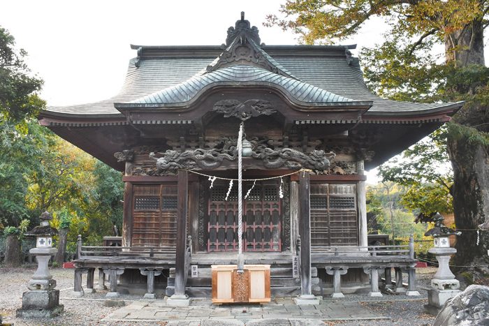 江戸時代末期に信州・諏訪出身の矢崎善司昭方が手掛けた、豪華で精巧な彫刻が施された社殿が見所だ。