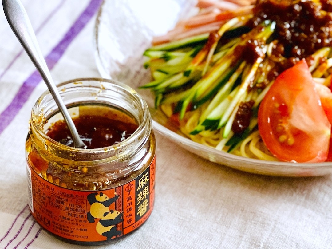 冷やし中華を作ったら、市販の「麻辣醤」をのせるだけ