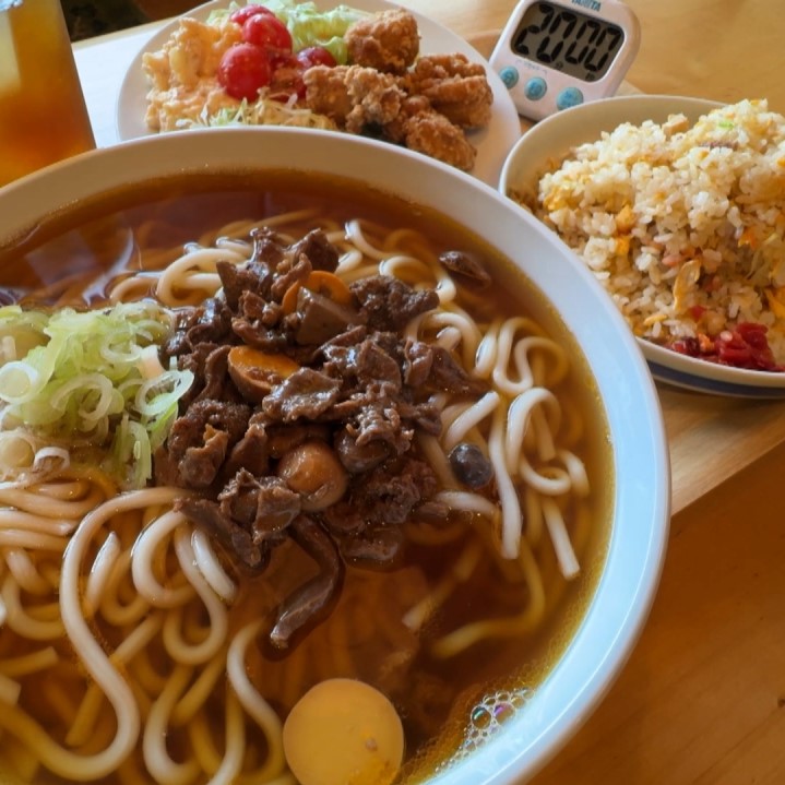 高岡戸出で80年以上愛される鶏もつうどんの店【風月】チャーハン「昭和セット」に20分以内の完食で無料になる爆盛り「チャレンジセット」も