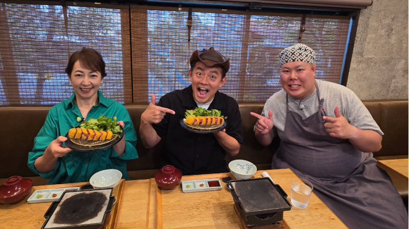 ナビゲーターはハンバーグ師匠こと井戸田潤さん&水野涼子アナウンサーのコンビ。まず向かったお店で出てきたのは、一番人気の「牛カツ」!