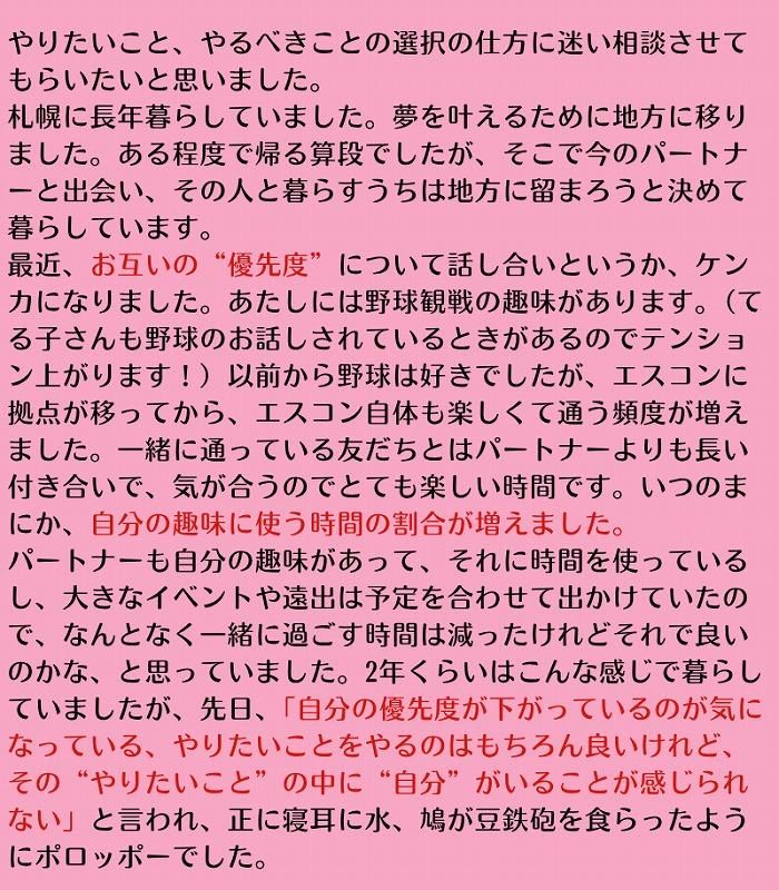 読者からのお悩み「大切なパートナーと『優先度』に関してケンカ…趣味と相手、どちらも大切だけどどうしたら…」