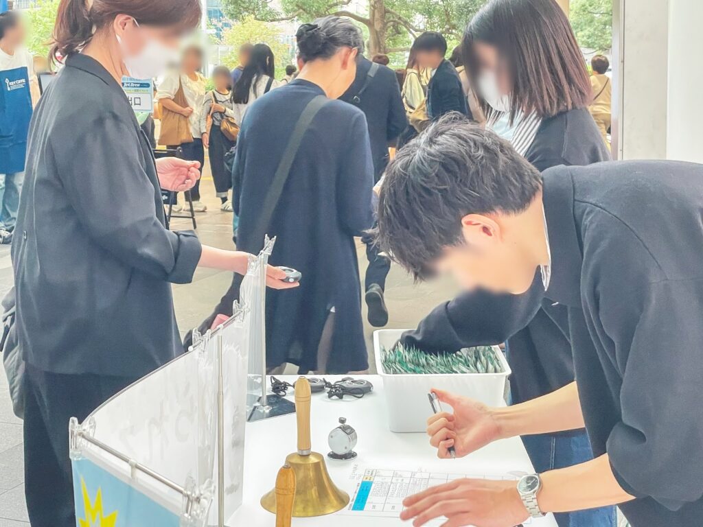 会場ではお客さんにブラインドで10秒を計っていただく「10秒チャレンジ」というゲーム企画をやっていました。