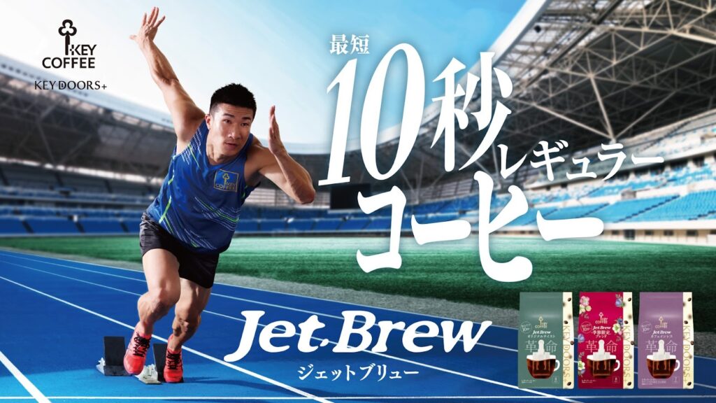 「JET BREW」の新CMとして、“ジェット桐生”の愛称で親しまれている陸上競技選手・桐生祥秀さんを起用した『ジェット桐生vsブリュー祥秀』が10月4日(土)よりTV・Webで順次放送※されているほか、キーコーヒー公式Youtubeチャンネルにて公開されています。「JET BREW」が“最短10秒”でレギュラーコーヒーの抽出が可能なことと、レギュラーコーヒーであることのクオリティの高さを伝えるため、短距離走で日本人選手初の100m 9秒台を記録し、“ジェット桐生”の愛称で親しまれている陸上競技選手・桐生祥秀さんを起用したそうです。