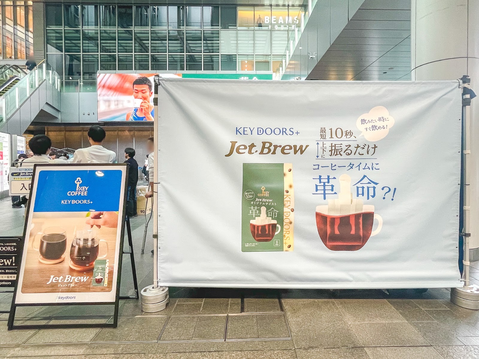 名古屋駅JRゲートタワーで行われたキーコーヒー「KEY DOORS + JET BREW」の試飲イベント。最短10秒でいれられるコーヒーと聞き、どんな仕組みなのかを確かめに足を運びました。