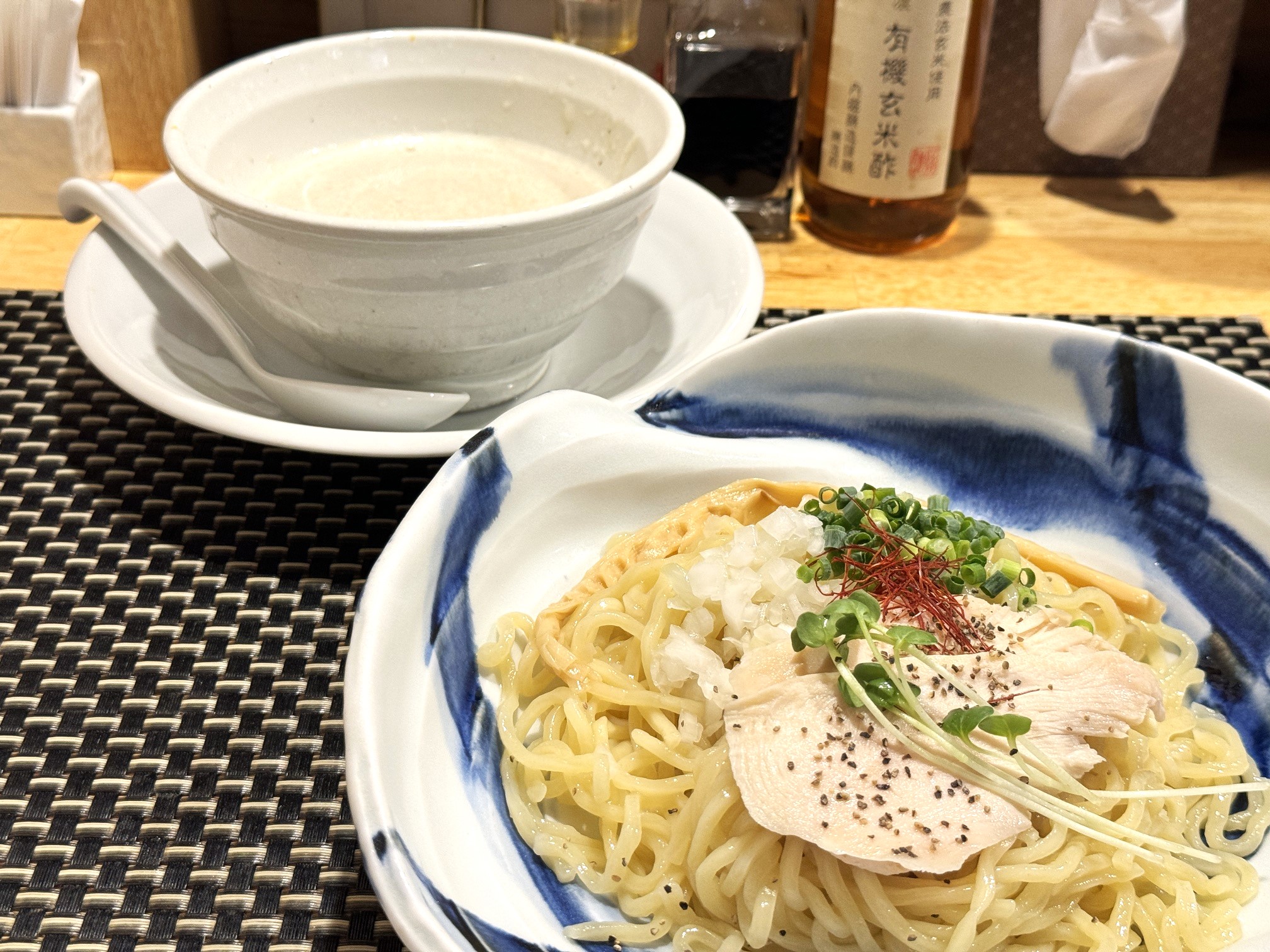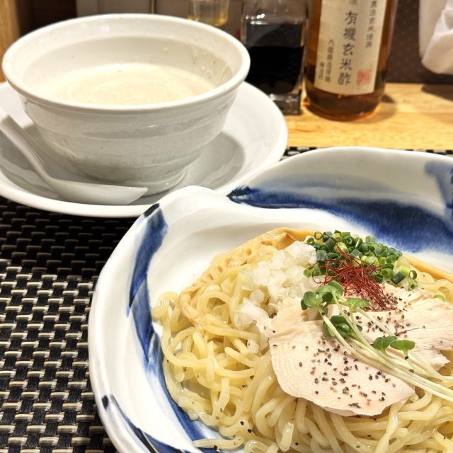 ラーメンでは鶏白湯スープのものはよく見かけることがありますが、つけ麺タイプのものはちょっぴり珍しいですよね!というわけで、この日は「濃厚鶏白湯つけ麺」を食べてみることに。