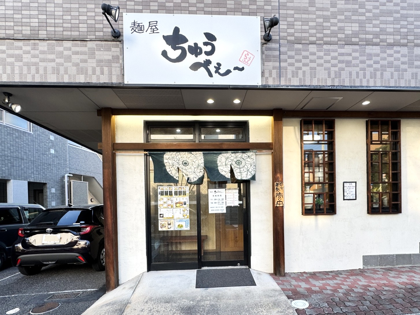 遠くからでも目立つ大きな看板はラーメン店らしくシンプルかつ和風な雰囲気なのに、その外観はおしゃれなカフェのようにスタイリッシュ!男性だけでなく、女性も気軽に入店しやすい雰囲気が好印象です。