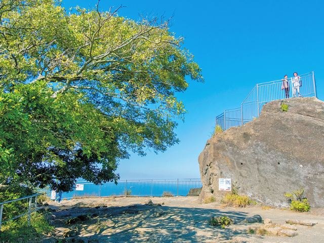 高さ約100mの絶壁から突き出た端にある展望台「地獄のぞき」は、山林がはるか下に見えて、スリリング!東京湾や関東平野、伊豆半島までを見渡すことのできる眺望は見事です。
