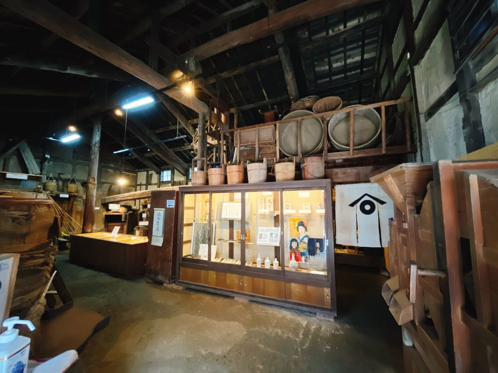 店舗近くにある新館では、足踏み小麦ひき割機や仕込桶などしょうゆ作りの道具が展示された資料館として、一般に公開されています。