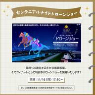 9月の記念セレモニーで来場者が描いたイラストをもとにしたドローンアートも登場し、地域とともに歩んできた京都競馬場の温かさと未来への希望を感じることができました。