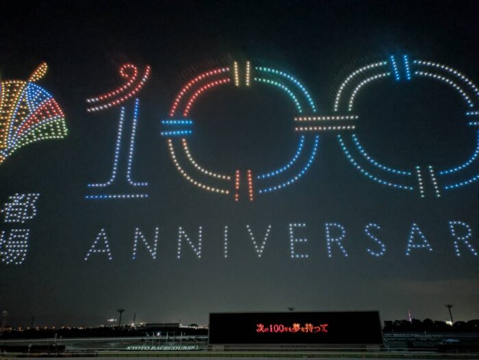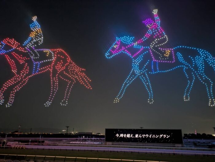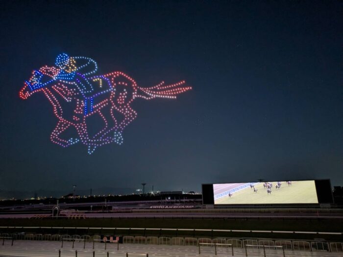 京都競馬場の100周年という記念すべき年のフィナーレを飾るこのイベント、1,500機ものドローンが夜空を舞う光景は、まさに“競馬の新時代”を感じさせるものでした。