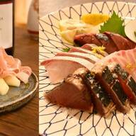 床・壁一面がウッド調で、店内中央にある一枚板のテーブルが印象的なほっこりする空間。カウンター席はお一人さまやカップルにぴったりです。