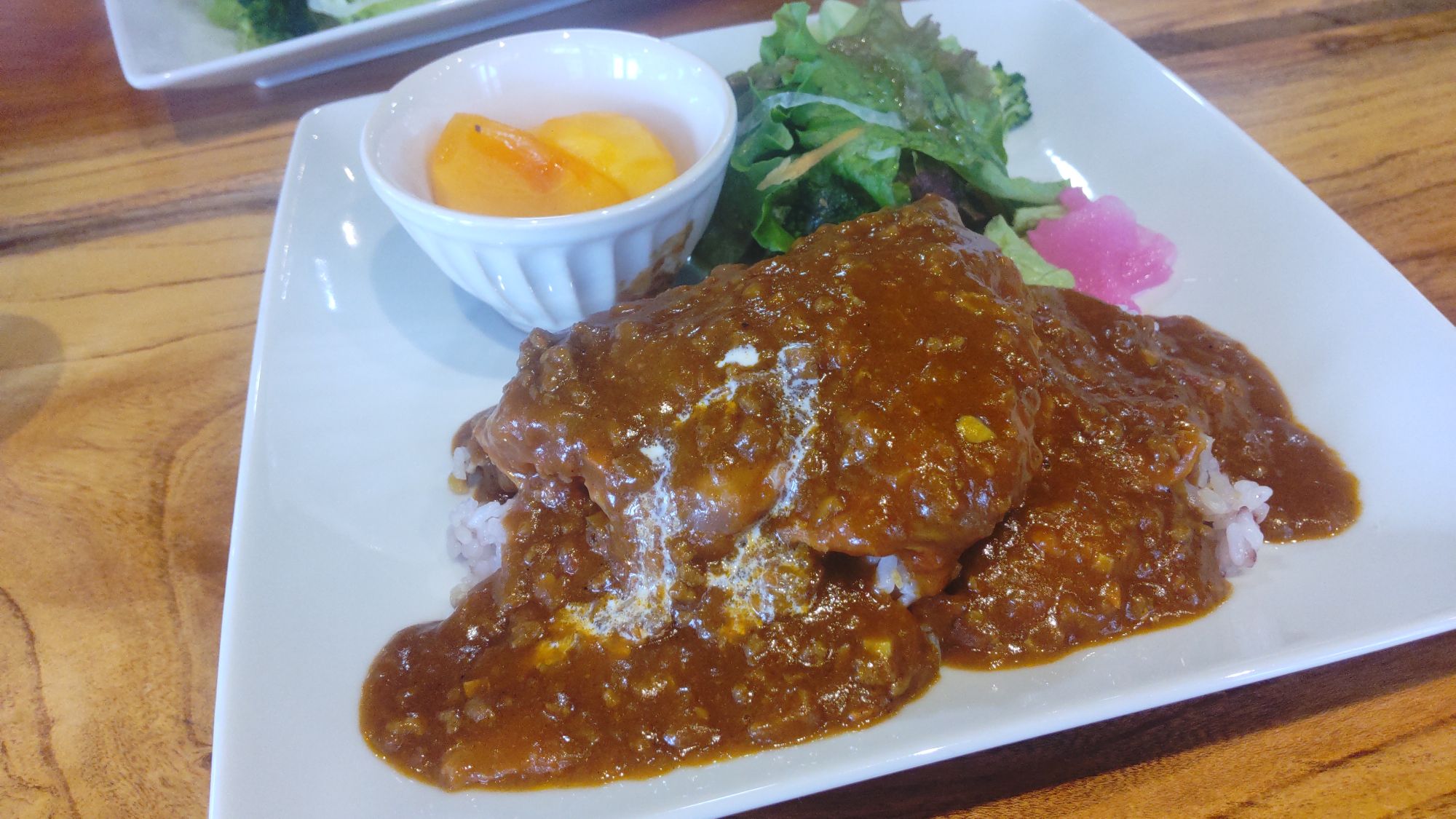筆者が注文したのは、キーマ風カレー ライス付き(税込800円)。ルーをたっぷりかけてくれています!