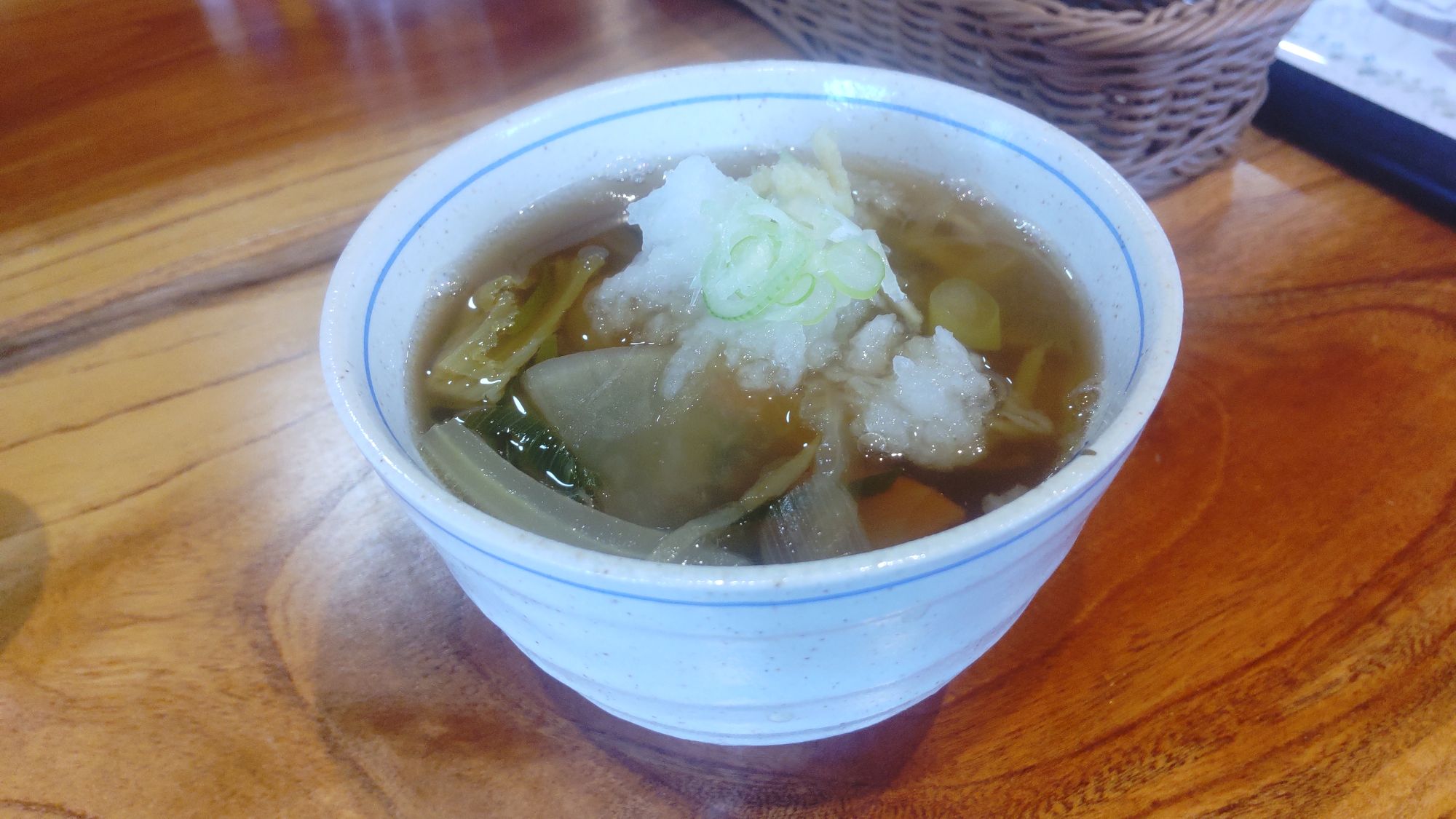 その時により、スープの内容は異なるようです。この日は生姜が効いた具だくさんの和風スープ。大根や白菜、人参、ネギなど寒くなる季節に嬉しい根菜と生姜で、身体がポカポカ!