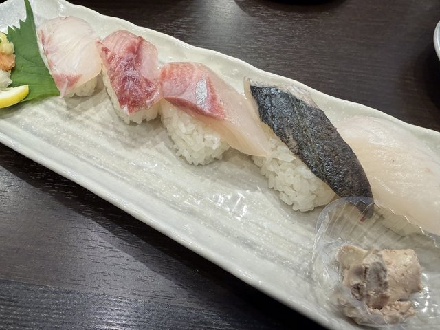 この日は右から、かわはぎ、炙りさわら、カンパチ、ぐれ、すすぎ。大手チェーンではなかなか出せないラインナップです。