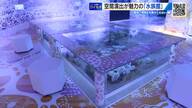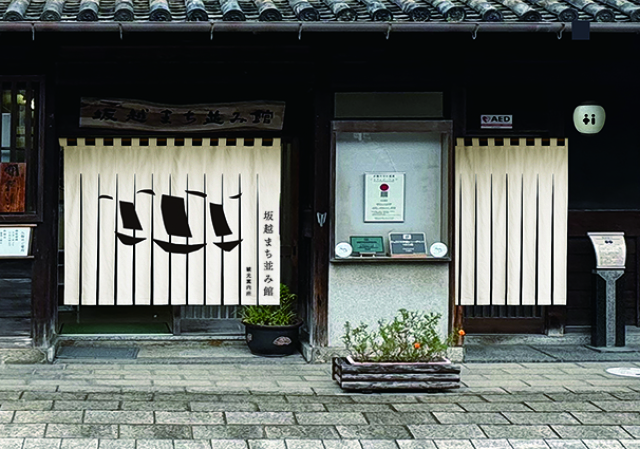 生まれ変わった館内は天井から北前船の帆をイメージした白布が何枚も垂れ下がり、穏やかな雰囲気。室内を取り囲むように並ぶ大判のタペストリーには坂越の歴史や祭り、同館のルーツなどを紹介する写真や文章がプリントされている。銀行時代の金庫室は重厚な扉はそのまま残しつつミニシアターに。地元住民が坂越の魅力を語るインタビュー映像を上映する。また、飲食物を持ち込める休憩スペースが設けられ、観光で訪れた人が気軽に立ち寄れるスポットにもなった。
