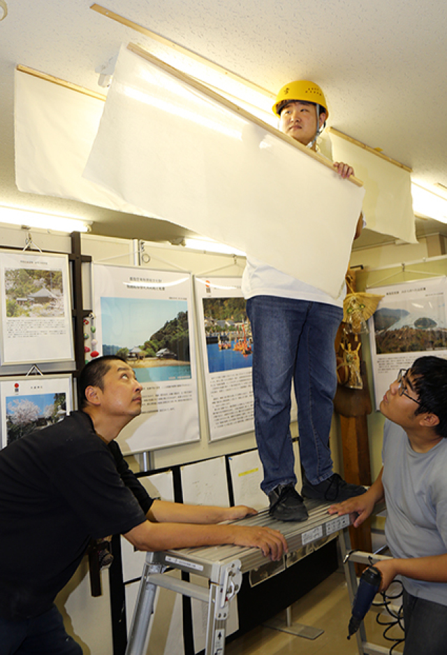 同館は日本遺産「荒波を越えた男たちの夢が紡いだ異空間―北前船寄港地・船主集落」に認定されている坂越地区に大正前期に建設された木造瓦葺き2階建てで、かつては銀行だった建物。現在は入館無料の資料館兼観光案内所として使われている。兵庫県の「景観形成重要建造物」にも指定されている同館をより利活用しようと、NPO「坂越のまち並みを創る会」(片山安忠会長)が関西福祉大学教育学部の金子美里ゼミと市などの協力で今年6月からリニューアルプロジェクトに取り組んできた。