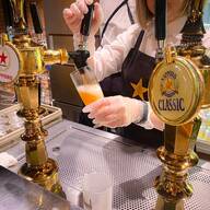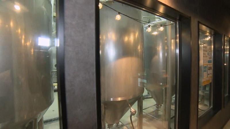 中に入ると、ガラス越しに醸造所の見学ができ、本格的なビール作りの現場を間近で見られるんです。