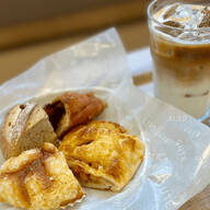 コーヒーやラテなど、ドリンクメニューも充実しています。中でも『カフェラテ』は、ほろ苦さとミルクのまろやかさが調和した味わいが、「デニッシュトースト」と相性抜群。