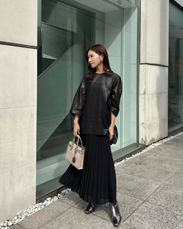 【秋編】大人可愛いスカートコーデ③素材感の差を意識したオールブラックコーデ