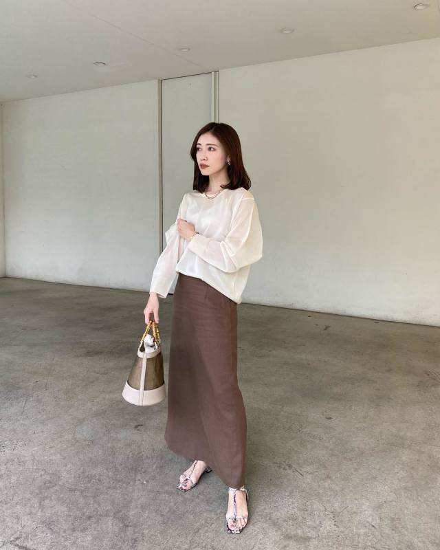 【秋編】大人可愛いスカートコーデ②シアーブラウス×ロングスカート