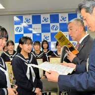 鳥屋野中学校の代表生徒から花束と感謝の言葉が贈られた