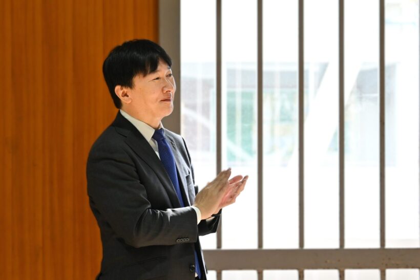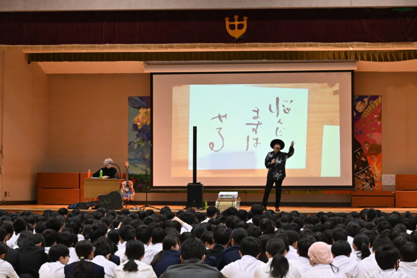 公演の冒頭で村尾社長は、「人と人とのご縁を大切にしてほしい。今日この場ができたのも、さまざまなご縁が重なり合ってのこと」と話し、学校や地域、そして仕事を通じて生まれるつながりの大切さを強調した。