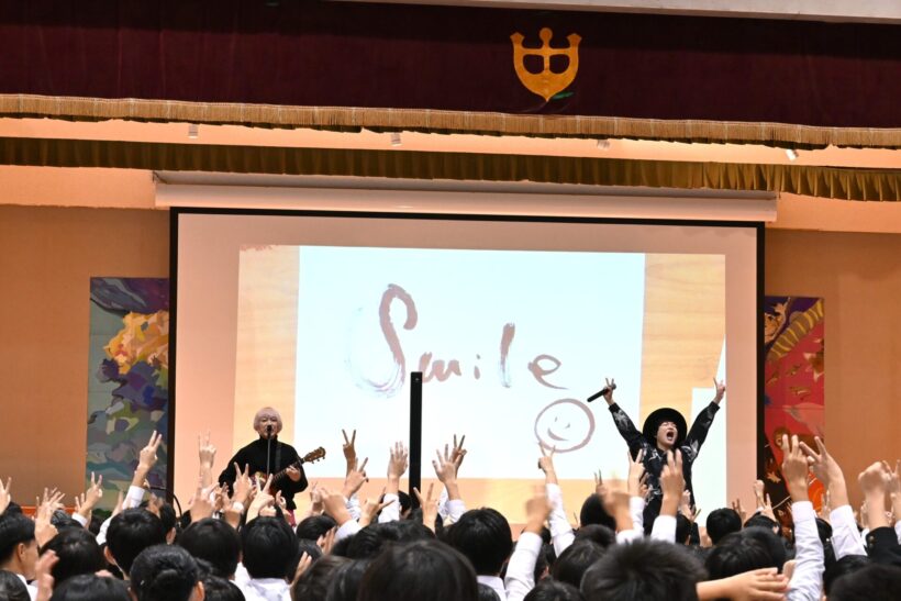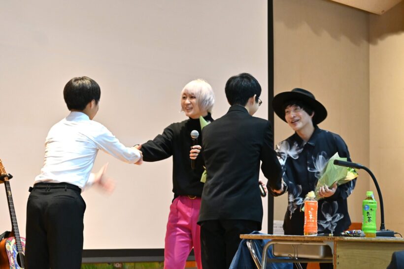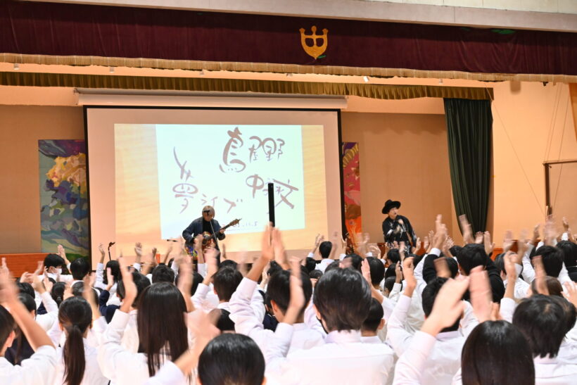 公演ではアコースティックライブが行われたほか、「ひなた」のたかのりさんが自身のこれまでの人生を振り返り、やりたいことに挑戦する楽しさや仲間の大切さについて語った。挑戦や挫折といった実体験にも触れながら「歌うことも、命があることも、当たり前だと思っていたことは、実は当たり前ではない。苦しいときは、1人で抱え込まずに誰かに相談してほしい」と述べ、最後に「どんなときも感謝の気持ちを忘れずに」と生徒たちにメッセージと歌を送った。その後も、力強く美しい歌声とギターの音色で会場を盛り上げた。