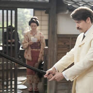 おばあちゃんが帰ってきたことに気づいて、大喜びの富士くん。思わずおばあちゃんの方へ駆け出そうとしますが、なかなか前に進むことができません。なぜなら…富士くんの反応を予期していたおじいちゃんが、富士くんをしっかりと抑えていたから!