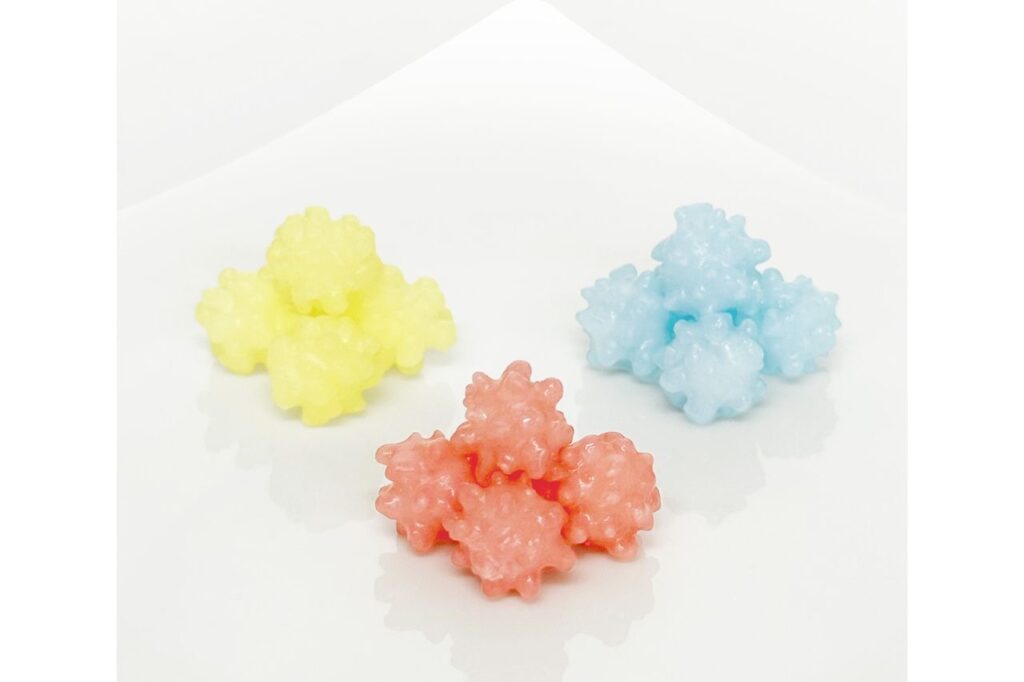 1847年の創業以来、伝統と一子相伝の技を守り続けてきた[緑寿庵清水]には、熟練の職人が本物の味・形・色を追求し、丹精込めて手作りした金平糖が並ぶ。味わい豊かな苺、さっぱりとした檸檬、透き通るように爽やかな天然水サイダーと人気の味がセットに。艶々と輝く金平糖は噛むと口の中でほろほろとほどけ、一粒で素材本来の美味しさを存分に味わえる。