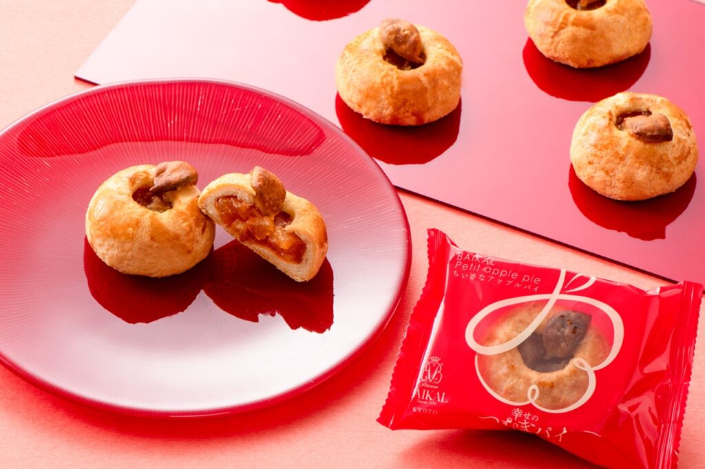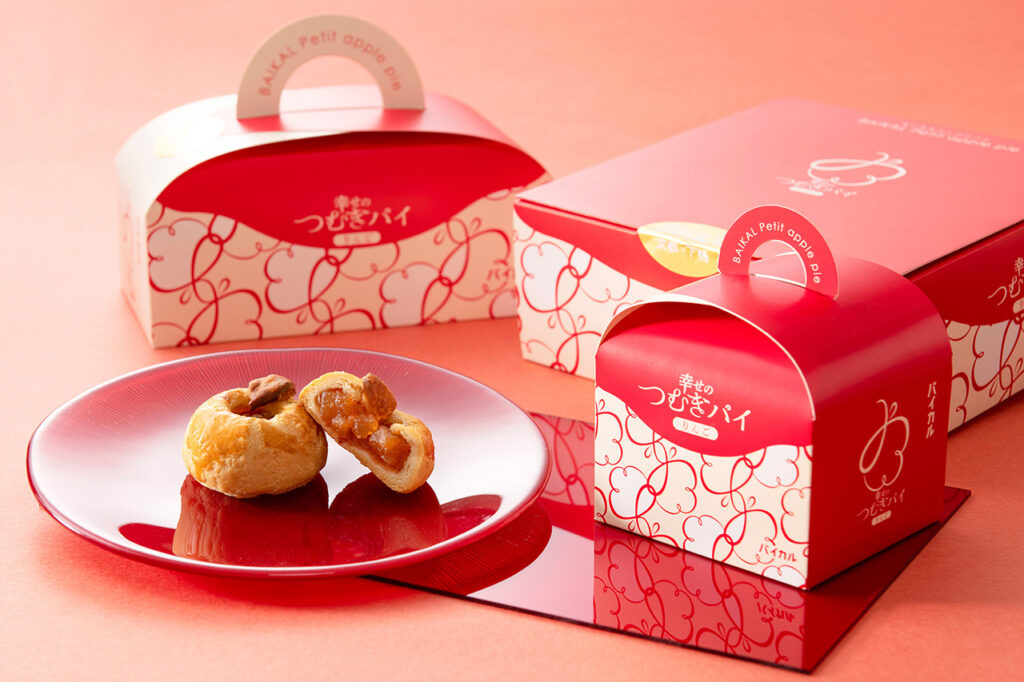1955(昭和30)年創業、京都の洋菓子店[バイカル]。小さく愛らしい形の幸せのつむぎパイは看板商品のアップルパイをより渡しやすく、食べやすいようにと作られたもの。青森県産・紅玉りんごのごろっとした果肉や、国産フレッシュバターの豊かな香りが楽しめる。