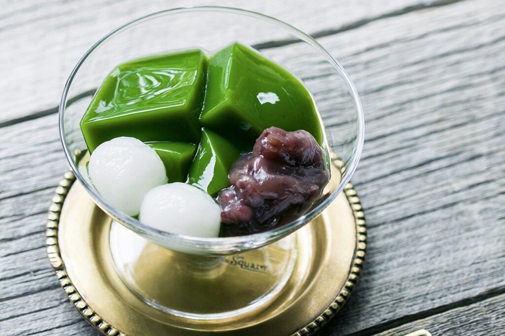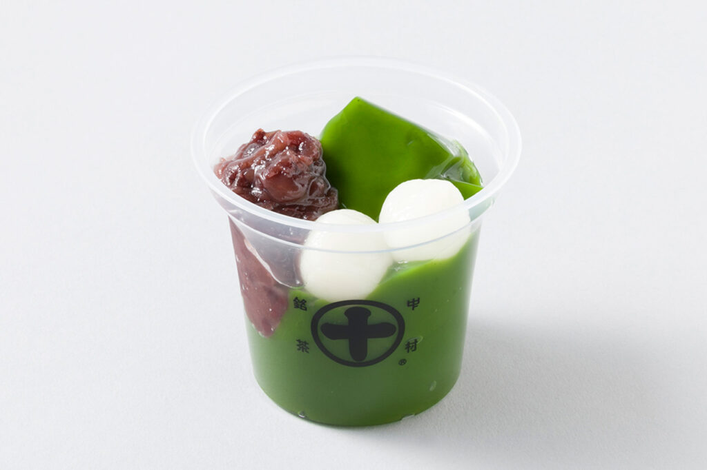 160年以上の歴史を持つ宇治の老舗茶商[中村藤𠮷本店]。オリジナルブレンドの中村茶をはじめ、お茶を使用したチョコレートのお菓子や、深みのある味わいと芳醇な香りに仕上げたマルトベイクなど魅力的な商品が並ぶ。生茶ゼリイはやわらかすぎずなめらかな口当たりで、お茶の味わい豊かな抹茶ゼリイに白玉と餡の相性がぴったり。