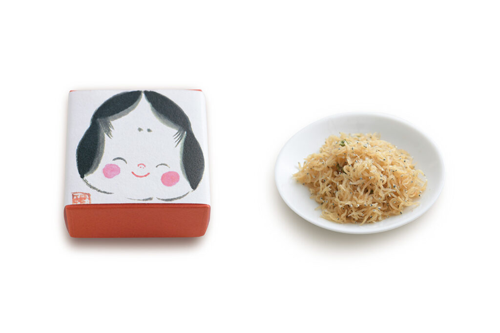 大宮松原にあるお寺[正法院]の寺庭婦人が炊くちりめん山椒。ふっくらと上品に炊き上げるちりめんじゃこは、実山椒を最後に加えることでピリリとした刺激に。愛らしい小箱はすべて奥さんの手描きで、季節や京都の風景がモチーフになっている。ちょっとしたプレゼントやお土産に最適なサイズ感も嬉しい。