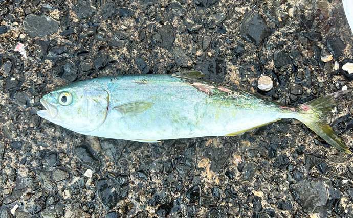 青物も回遊していて、泳がせてるのが豆アジの為、同行者に25cmのツバスがヒットしました。