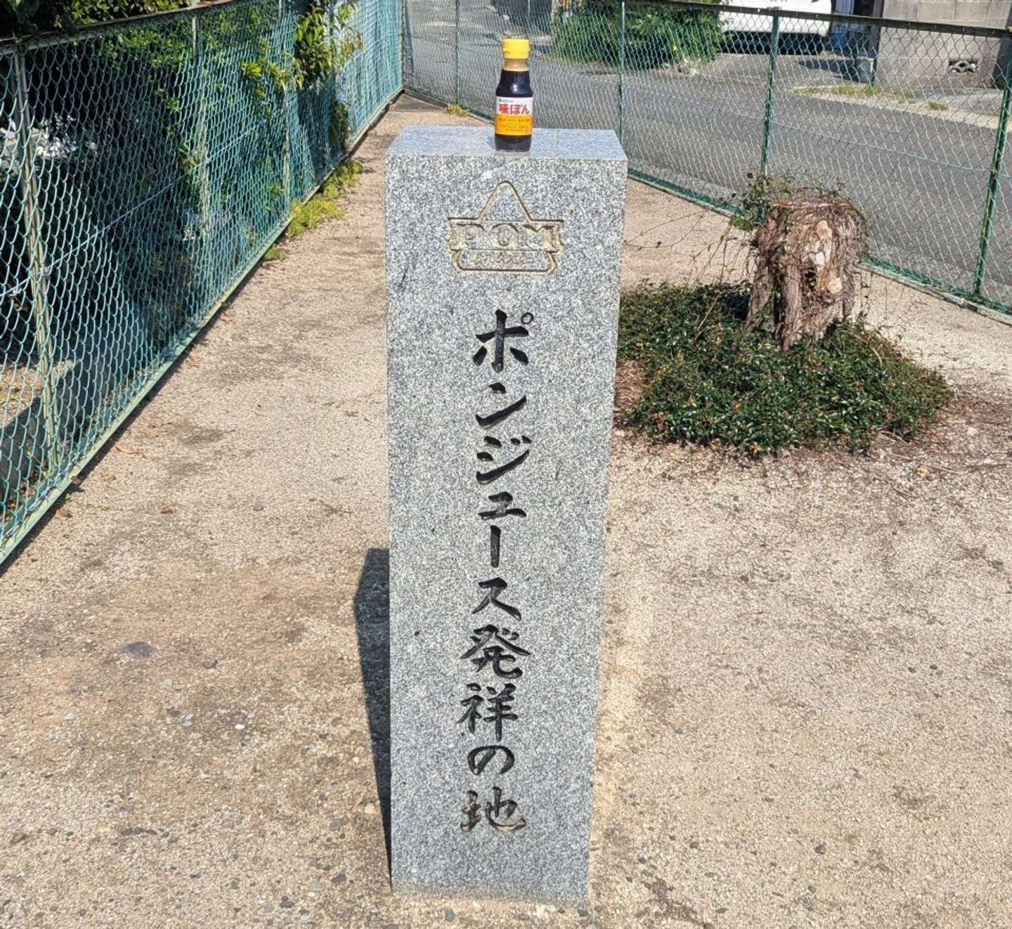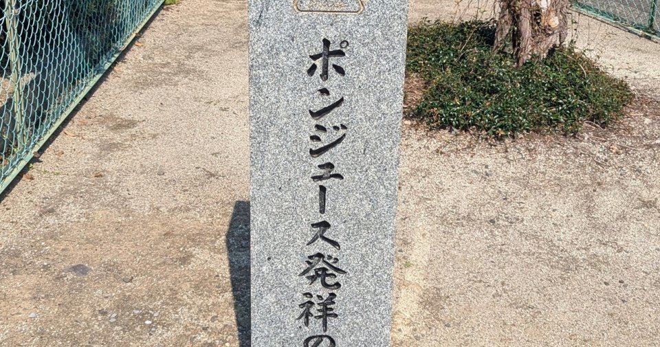 2025年8月25日、Xユーザーの境界(@kyodokoikoka)さんが披露した1枚に写っているのは、「ポンジュース発祥の地」という石碑。