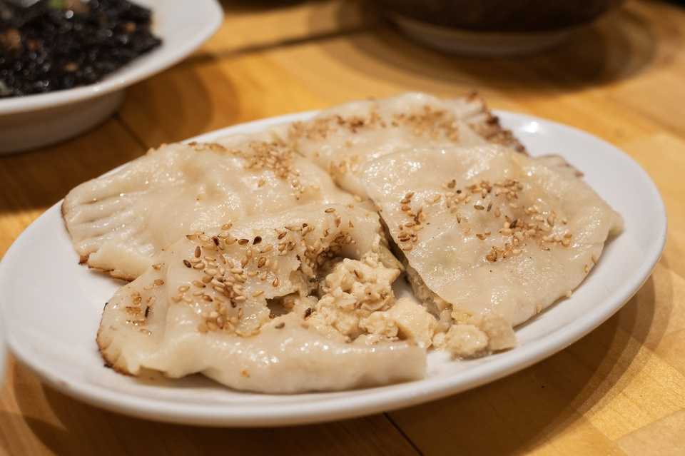 箸で持ち上げるのが難しいほどふっくら柔らかな皮に包まれているのは、なんと豆腐。味もあっさり塩味ベースで、ニンニクとニラがガツンと効いた日本の焼き餃子とは全く違う印象に驚きます。豆腐自体は日本と同じ物だそうですが、柔らかいのに弾力があり初めての食感。付け合わせの調味料が何種類かあったのですが、味変する間もなく完食してしまいました。