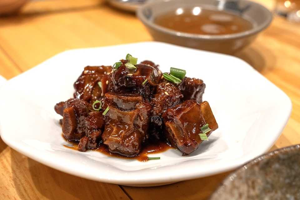 運ばれてきた瞬間に「絶対美味しいやつ!」と確信。黒酢と醤油と砂糖、ケチャップで味付けされたスペアリブは、酢豚のような甘酸っぱさの中に、ケチャップのコクが加わることで洋風感も感じられる小洒落た味。スペアリブの身の柔らかさと脂の乗り具合、タレの濃厚さと奥深い味わいがたまらない逸品です。
