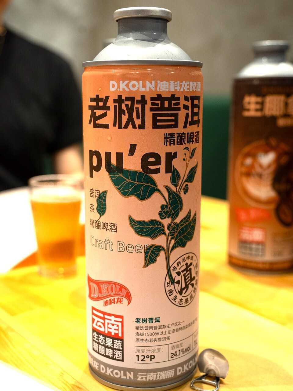老树普洱は雲南省特産プーアル茶のクラフトビール。一見軽めのビールのようですが、グラスを近づけるとほんのり甘く、香ばしいプーアルの香りがふわり。