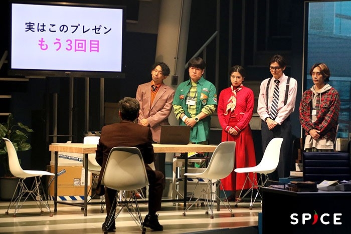 また、映画では仕事人間なプランナー・吉川が主人公だったが、今回はプランナー兼営業の村田が主人公という、一種のパラレルワールドとなっており、理由も物語が進むにつれて判明していく。薮が演じる村田は、仕事中のテキパキとしているがけだるい雰囲気と映画についてキラキラした表情で語るギャップが魅力的だ。その後輩・遠藤(平間壮一)は、思い切りの良さと人懐っこさが可愛らしいキャラクター。舞台オリジナルの展開や登場人物も良いアクセントとなっている。映画の魅力はそのままに、舞台だからできる見せ方・生ならではの面白さに繋げているほか、映画では描かれなかった人となりや仕事への思い、背景なども描かれ、本作に初めて触れる方はもちろん、映画を見た方も新鮮に楽しめる作品に仕上がっていると感じた。