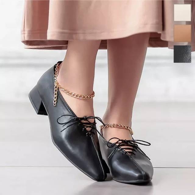 上品なスタイルが好きな40代女子にぜひチェックしてほしい、「チェーンアンクレットレースアップシューズ」。