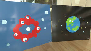 今回の展示は同社から出版される絵本『ミャクミャクと… ミャクミャク誕生ものがたり』の世界観を楽しんでもらおうと企画されたもの。